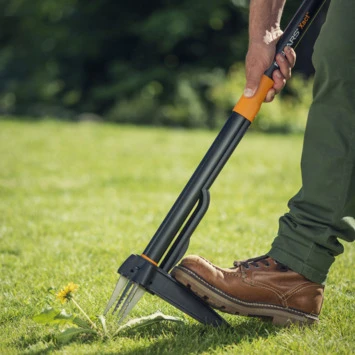 De Fiskars onkruidtrekker Xact is een unieke innovatie, om in het bijzonder paardenbloemen snel en milieuvriendelijk te verwijderen. De onkruidtrekker is makkelijk en comfortabel in gebruik. Hij maakt het mogelijk om in een rechte en staande houding onkruid te verwijderen. De diep in de bodem verdwijnende grijparmen uit roestvrij staal grijpen de wortel van het onkruid vanuit verschillende richtingen en trekken deze uit de bodem – er is geen verwijderingsmiddel meer nodig. Door het trekken aan de comfortabele greep wordt het onkruid in zijn geheel uit de grijparmen verwijderd.
